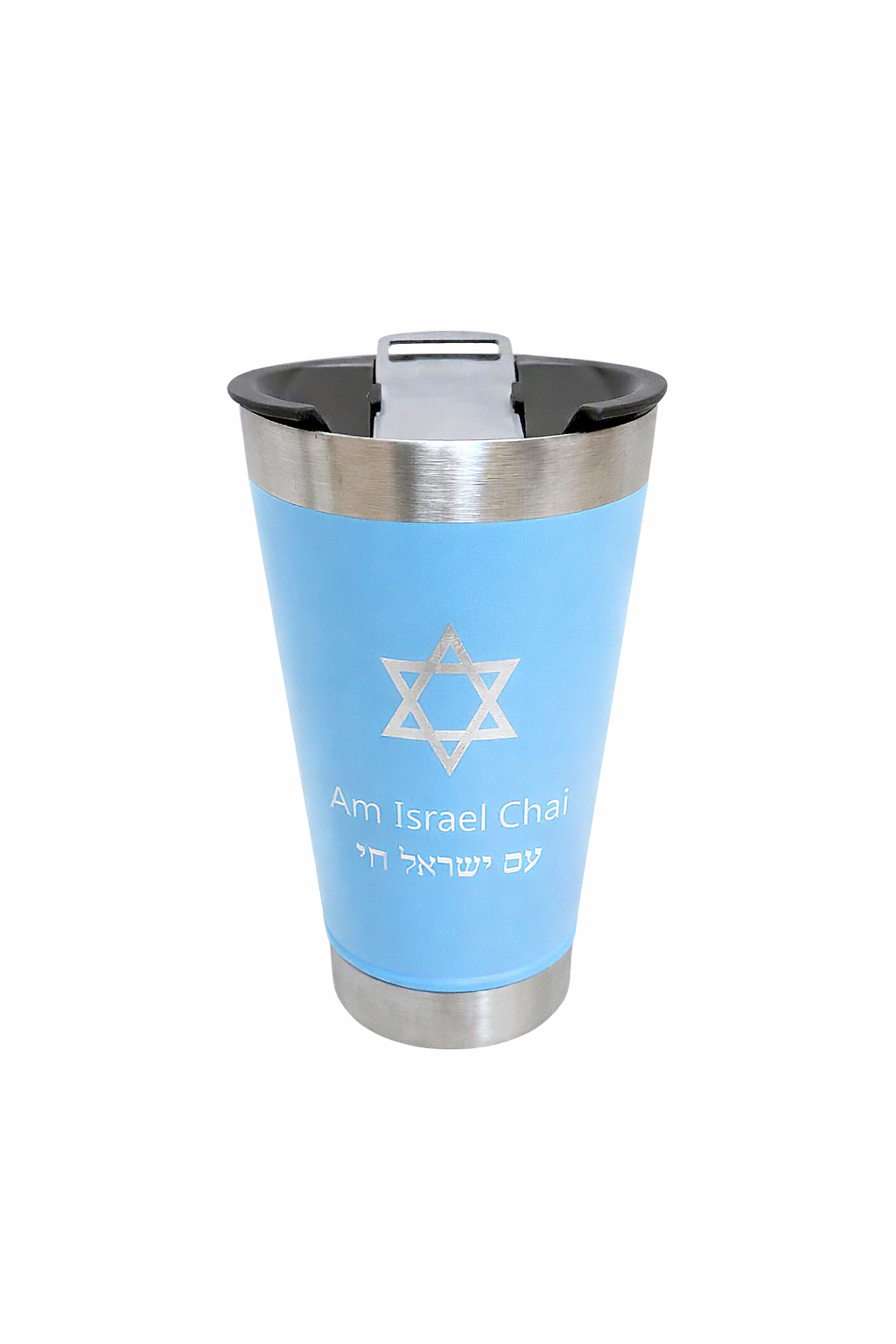 O copo térmico “Am Israel Chai” é a combinação ideal de utilidade e significado. Com 473 ml de capacidade, ele mantém sua bebida quente ou fria por horas graças ao seu corpo em aço inox com parede dupla. O destaque vai para a gravação a laser da Estrela de David e a inscrição “Am Israel Chai” (עם ישראל חי), símbolo de orgulho e identidade judaica.