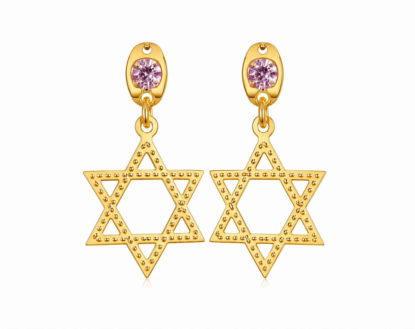 Brincos Estrela de David com Pedrinha Rosa – Dourado