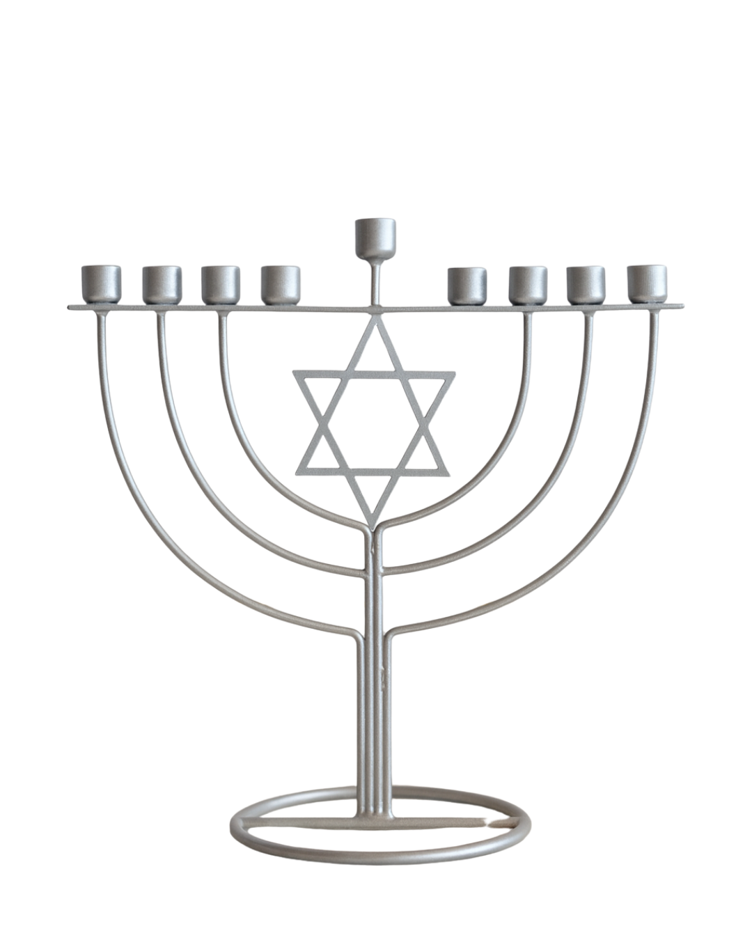 Chanukiá feita em alumínio de alta qualidade, ideal para celebração de Chanucá. Possui design clássico com Estrela de Davi central, acabamento prateado e espaço para 9 velas. Adquira a sua clicando aqui