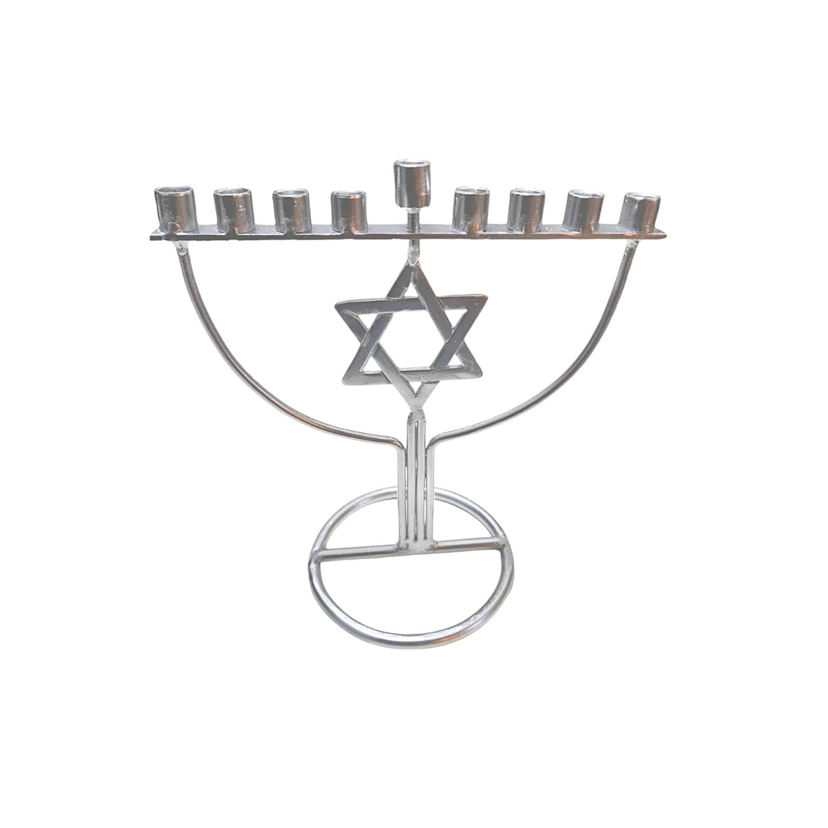 Chanukiá prateada com Estrela de David, perfeita para utilização durante a festa de Chanuká, a Festa das Luzes.