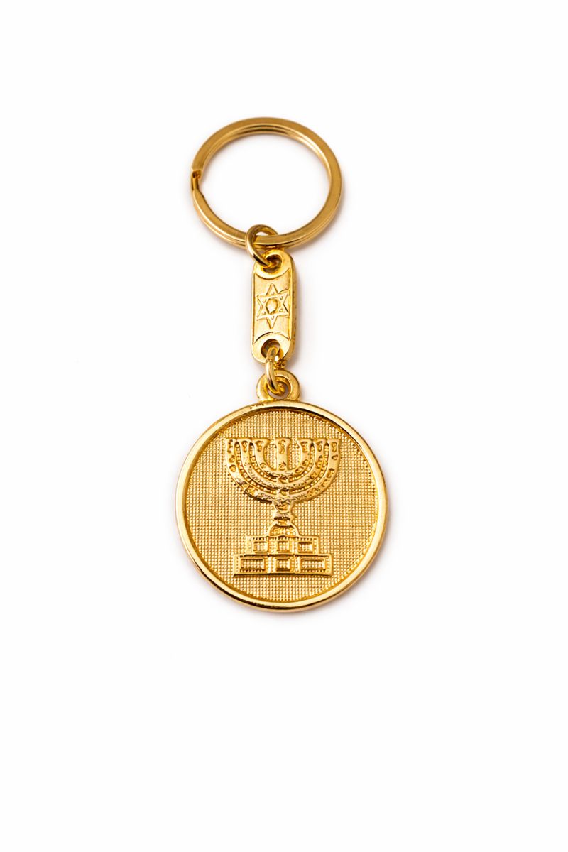 Este chaveiro judaico com símbolo da Menorá é um acessório elegante e carregado de significado espiritual e histórico. Produzido em metal resistente com acabamento dourado, ele traz em destaque a Menorá, um dos símbolos mais antigos e sagrados do judaísmo, representando luz divina, sabedoria, continuidade e a presença de D’us.