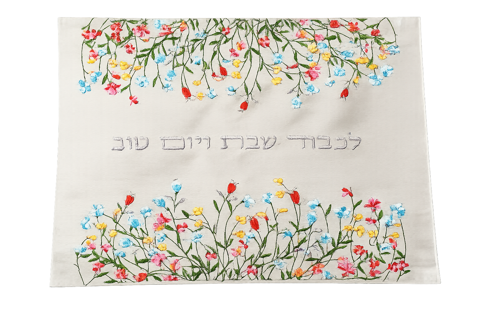 Produzida em Israel, esta peça une tradição judaica e design artístico, com bordados florais vibrantes que simbolizam renovação, vida e beleza. O acabamento refinado valoriza a mesa e combina perfeitamente com diferentes estilos de decoração, do clássico ao contemporâneo.