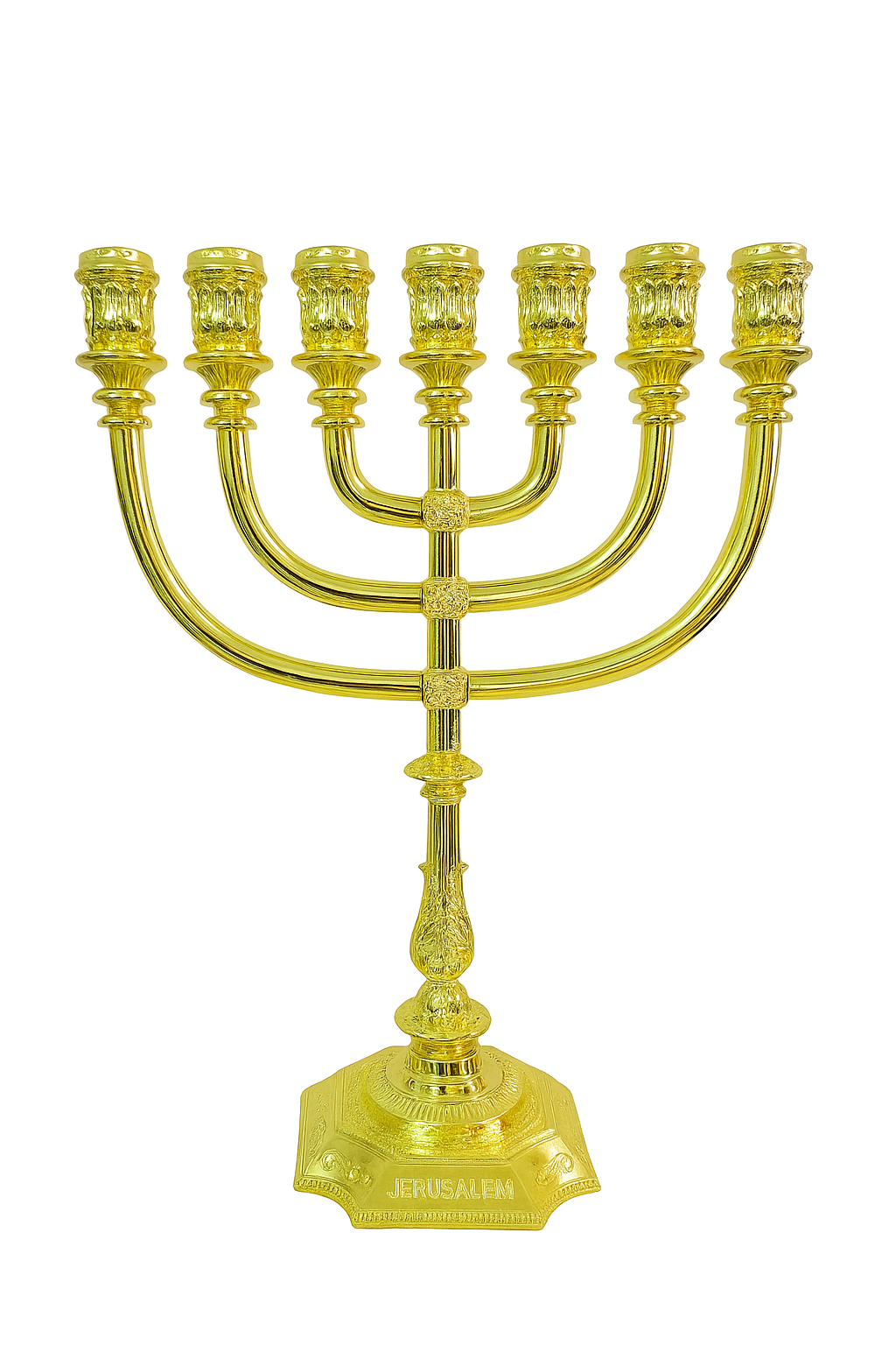 Menorá Luxo – Metal Banhado a Ouro 18K (35x26 cm)