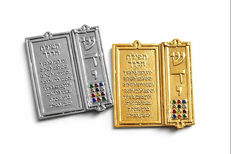 Esta mezuzá simbólica para carro é uma peça especial de proteção, fé e significado espiritual, ideal para acompanhar todos os caminhos com tradição e bênção. Confeccionada em metal, possui acabamento refinado e formato articulado, trazendo na parte externa a Oração da Viagem (Tefilat Haderech) escrita em hebraico, uma prece tradicional pedindo proteção, segurança e bons caminhos.