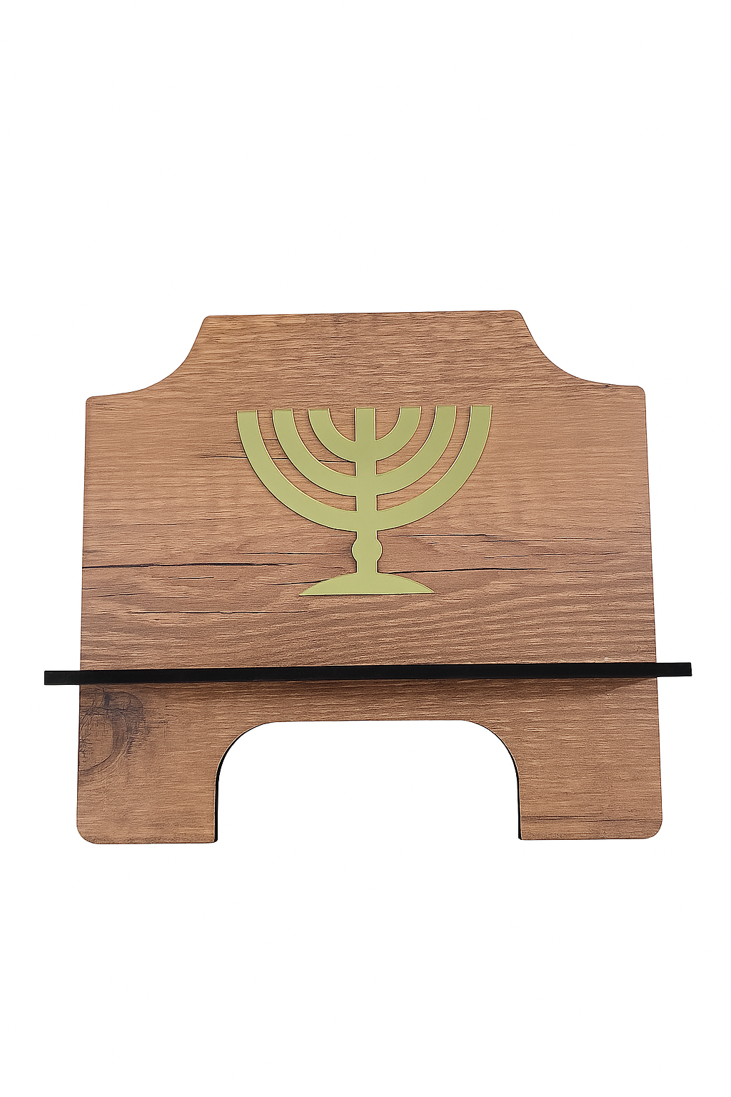 O destaque fica por conta do símbolo da Menorá dourada, feito em acrílico espelhado, que confere brilho e valor decorativo à peça. Ideal para apoiar livros de rezas, Tehilim, Tanach, ou obras de estudo, mantendo-os na posição ideal para leitura.